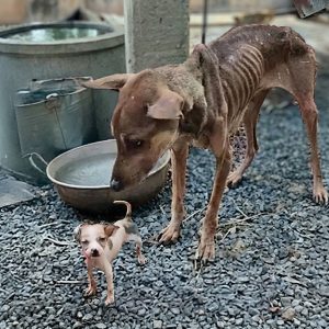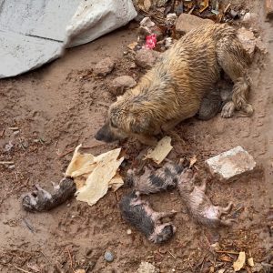 When we unlocked the heavy metal gate to the barren enclosure, Khanun and her tiny puppy were simply too weak to lift their heads from the damp…