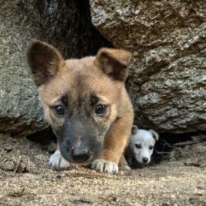 When rescuers peered into the deep, dark crevice of the mountain rock, they found Bokdung using her painfully thin body to shield her puppies from a relentless…