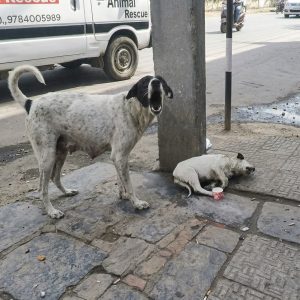 Standing Guard on the Unforgiving Asphalt: A Tiny Puppy’s Refusal to Leave Her Mother Behind