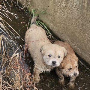 Trapped in the Freezing Concrete: Two Exhausted Puppies Wait for the End in Silence