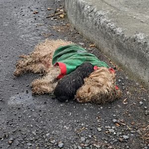 When rescuer Gabriela arrived at the reported location, she found the mother dog collapsed on the unforgiving asphalt of a busy highway, heavy tears silently tracking down…