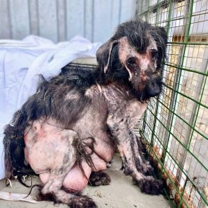 When the rescue team arrived at the dusty roadside, a frantic mother dog was standing guard over the trembling body of her puppy, Toggle. The tiny dog…