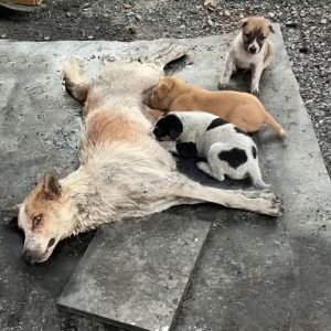 The stagnant afternoon heat hung heavily over the dusty road as a mother dog paced in tight, anxious circles, her quiet whimpers breaking the oppressive silence. She…