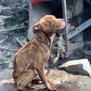 Some cries are too full of sorrow to ignore. For days, a desperate sound echoed from a fenced-off, dusty scrapyard. It wasn’t just a bark; it was…