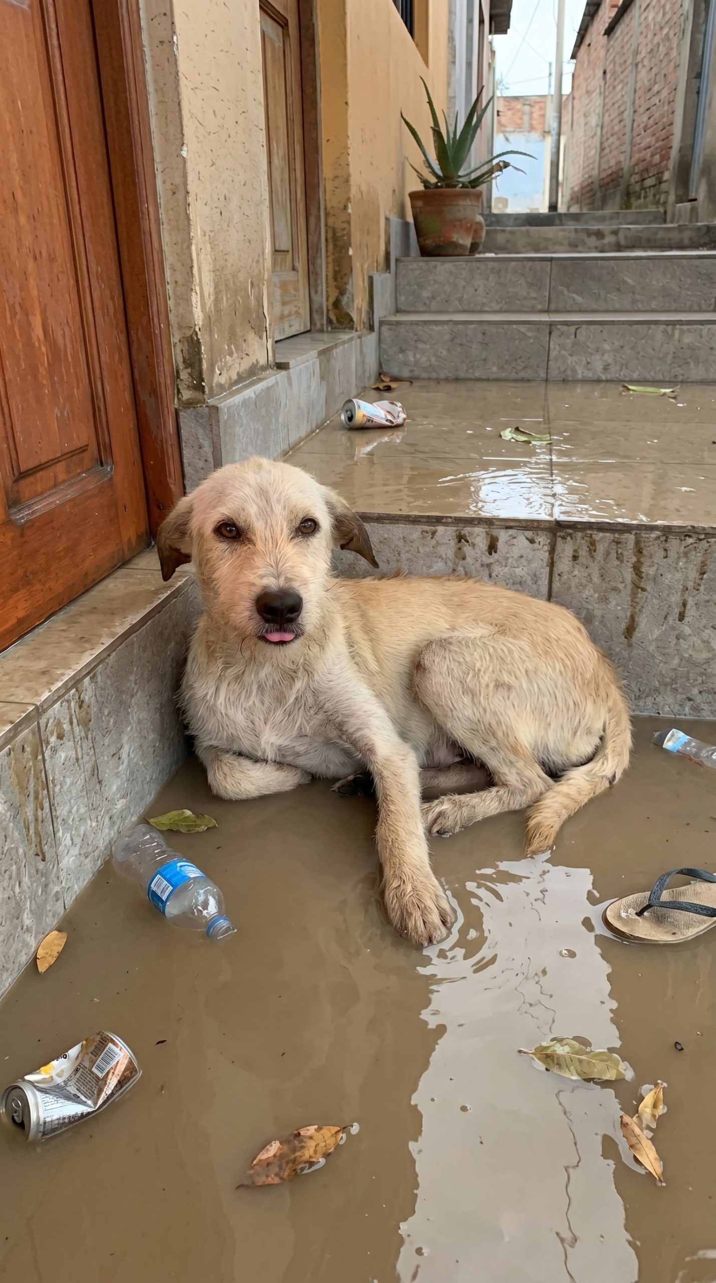 Heavy rains relentlessly pounded the streets, turning familiar neighborhoods into violent, rushing rivers of mud. A sweet dog named Mickey was trapped in the chaos, desperately trying to protect her fragile newborns.
