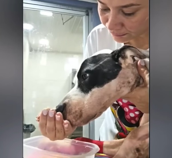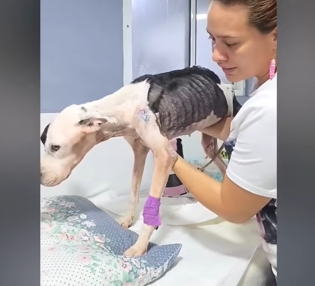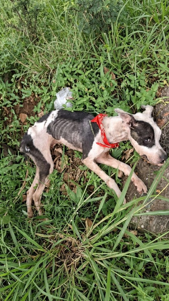 This sweet pit bull puppy weighed a mere fifteen pounds, a devastating fraction of what a healthy dog her age should normally be.