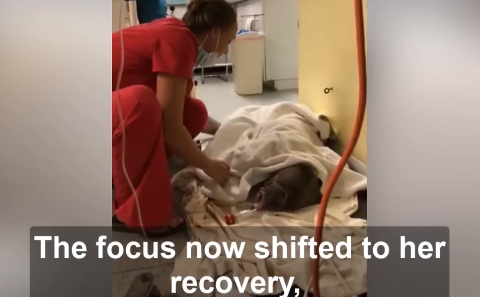 Magnolia woke up from the heavy anesthesia and was immediately transferred to a quiet, warm healing kennel.
