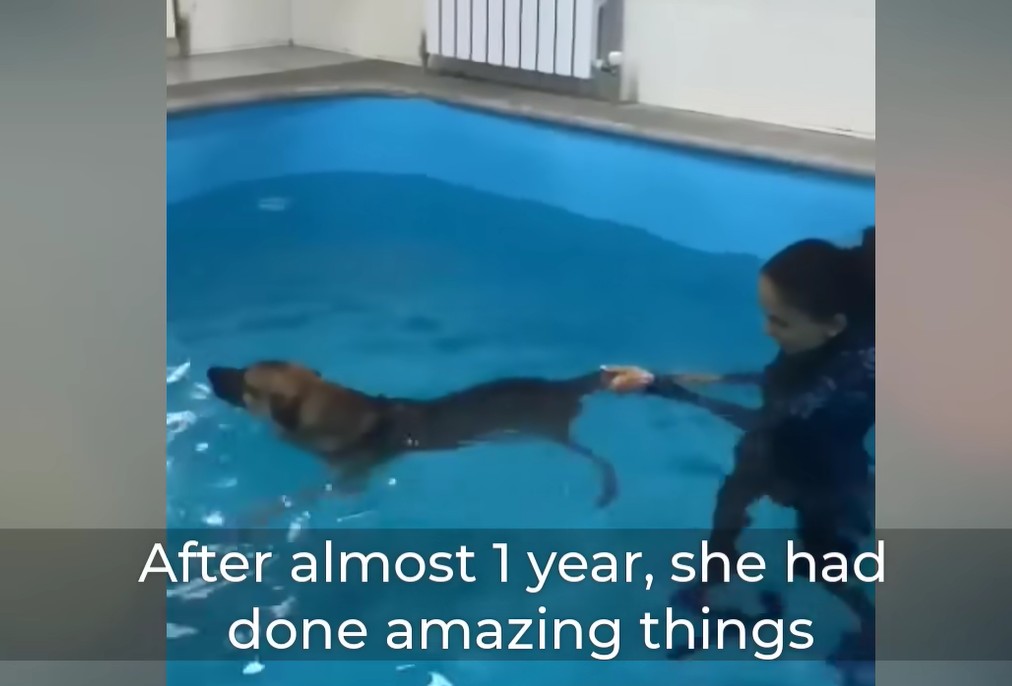• Utilizing specialized aquatic exercises to gently rebuild the dormant muscles in her severely atrophied hind legs.