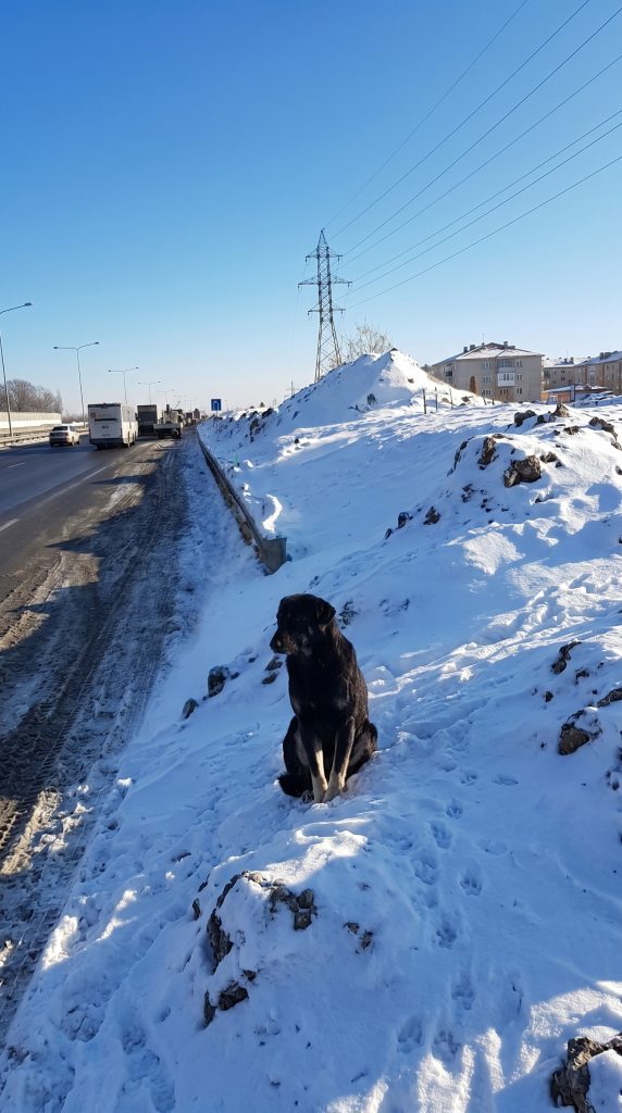 His frail body was violently shivering beneath a thick layer of frost, yet his eyes remained fiercely locked on every single passing car.