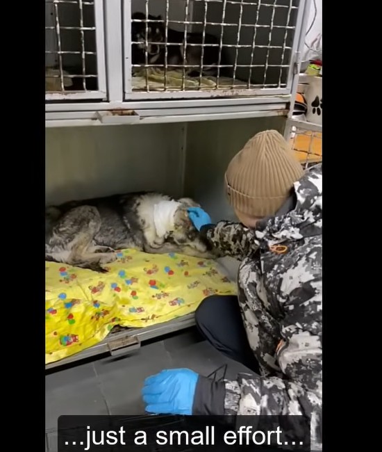 We stood in the clinic hallway holding our breath as Zuy slowly, but deliberately, pushed his trembling front paws against the smooth floor.