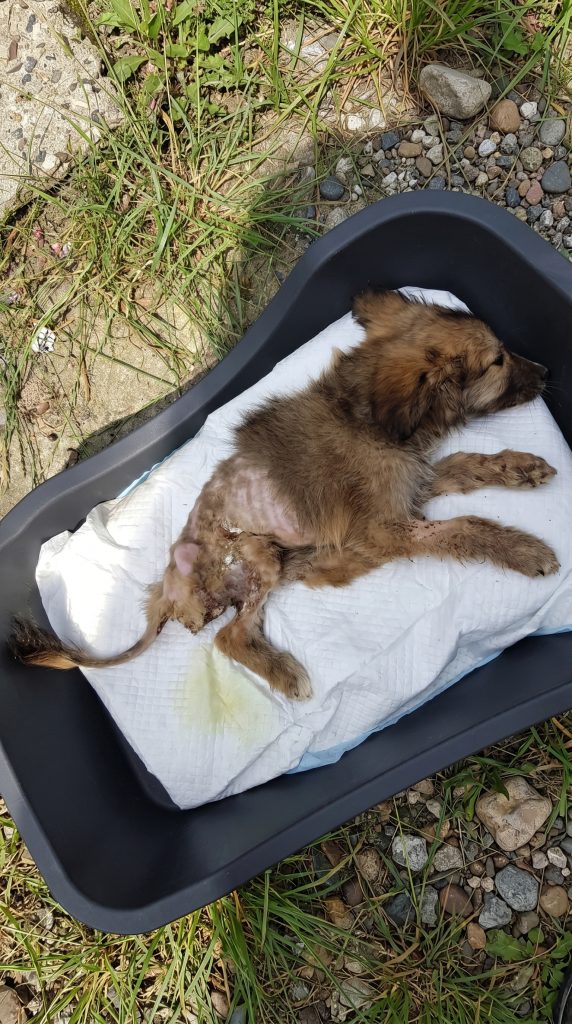 The compassionate medical staff named the sweet boy Tuzik, immediately administering fluids and pain relief to calm his frantic breathing.