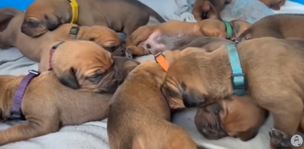 Tiya navigated her wriggling, demanding puppies with astonishing grace, ensuring that no single baby was left out in the cold during nap time.