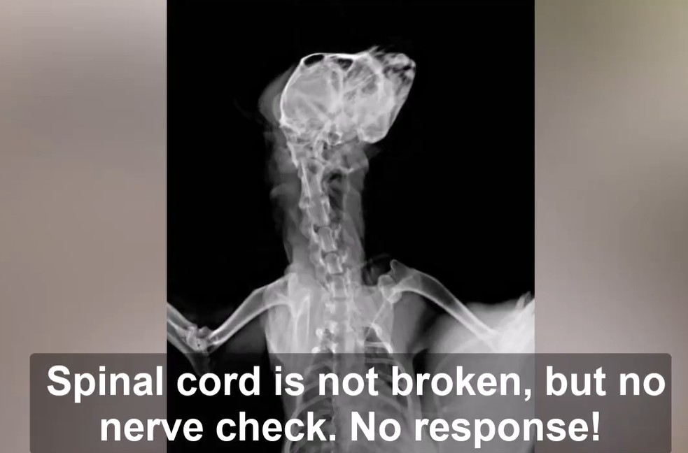 - Her limbs showed no fractures, but a severe twist at the base of her neck had severed crucial nerve connections.