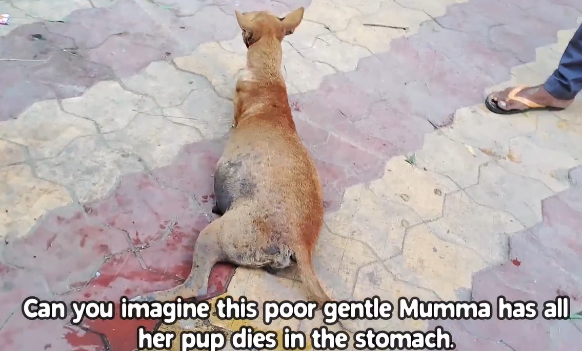 Her fragile body was bearing the unimaginable grief of carrying eight lifeless puppies, trapped within a womb that was meant to be a safe haven.