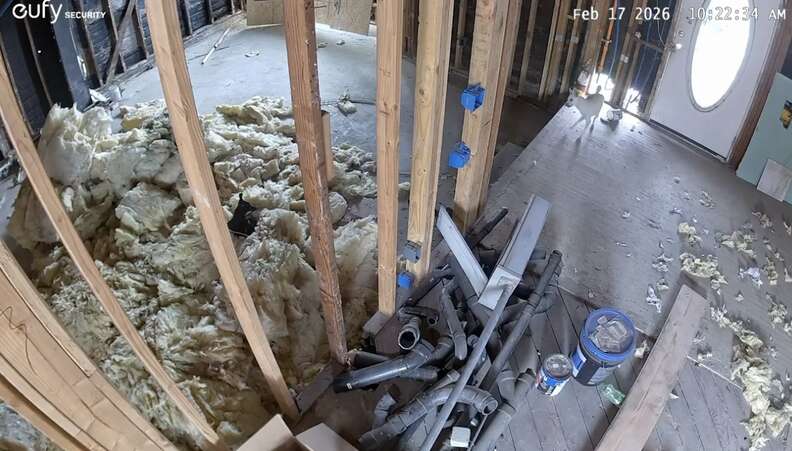 As soon as daylight broke, the worried family hurried over to the Southern California property. When they stepped inside the dusty living room, they found construction debris scattered everywhere across the floor.