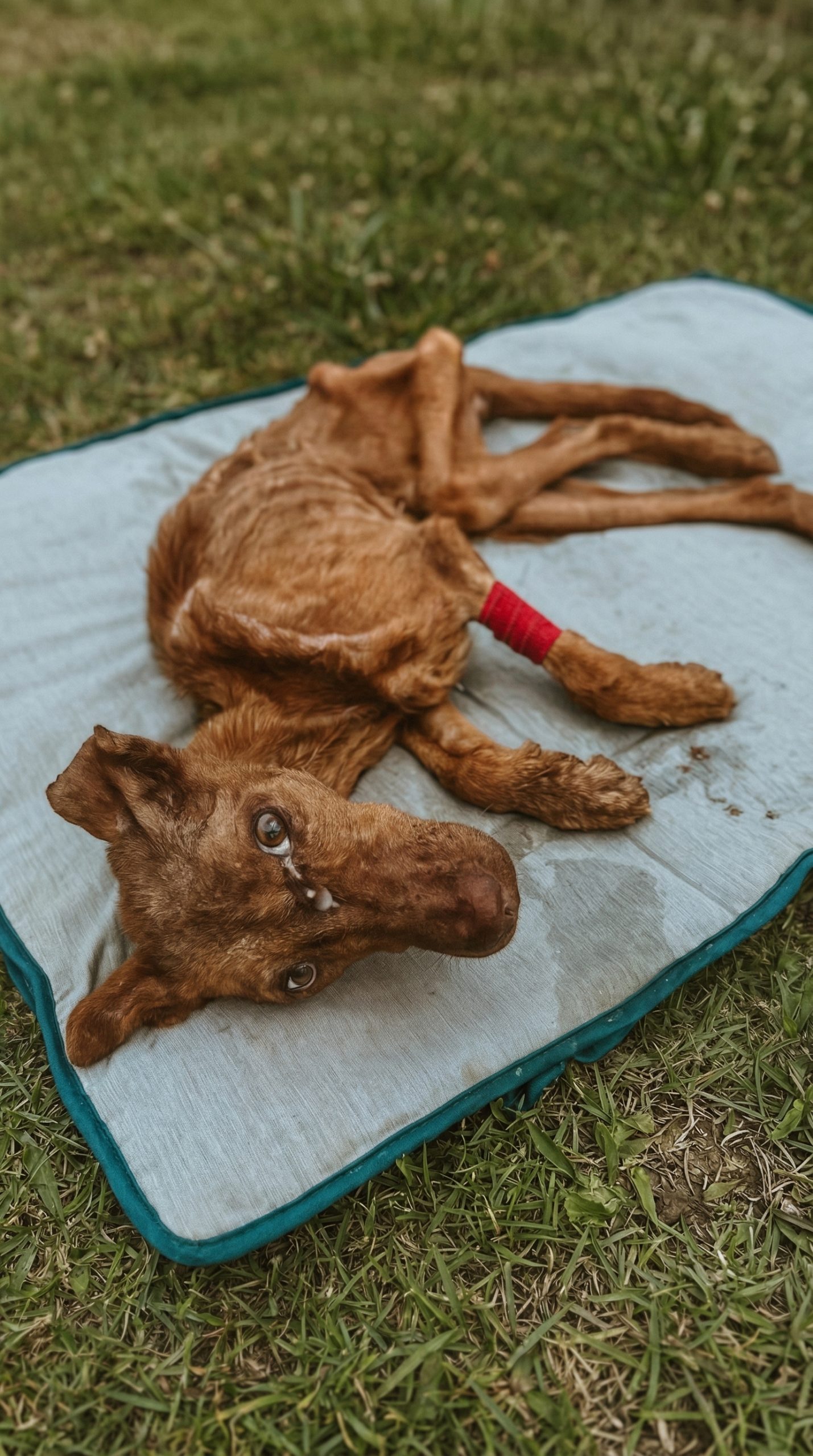 Then, after weeks of being carried from her bed to the grass, she pushed her front paws firmly into the floor.