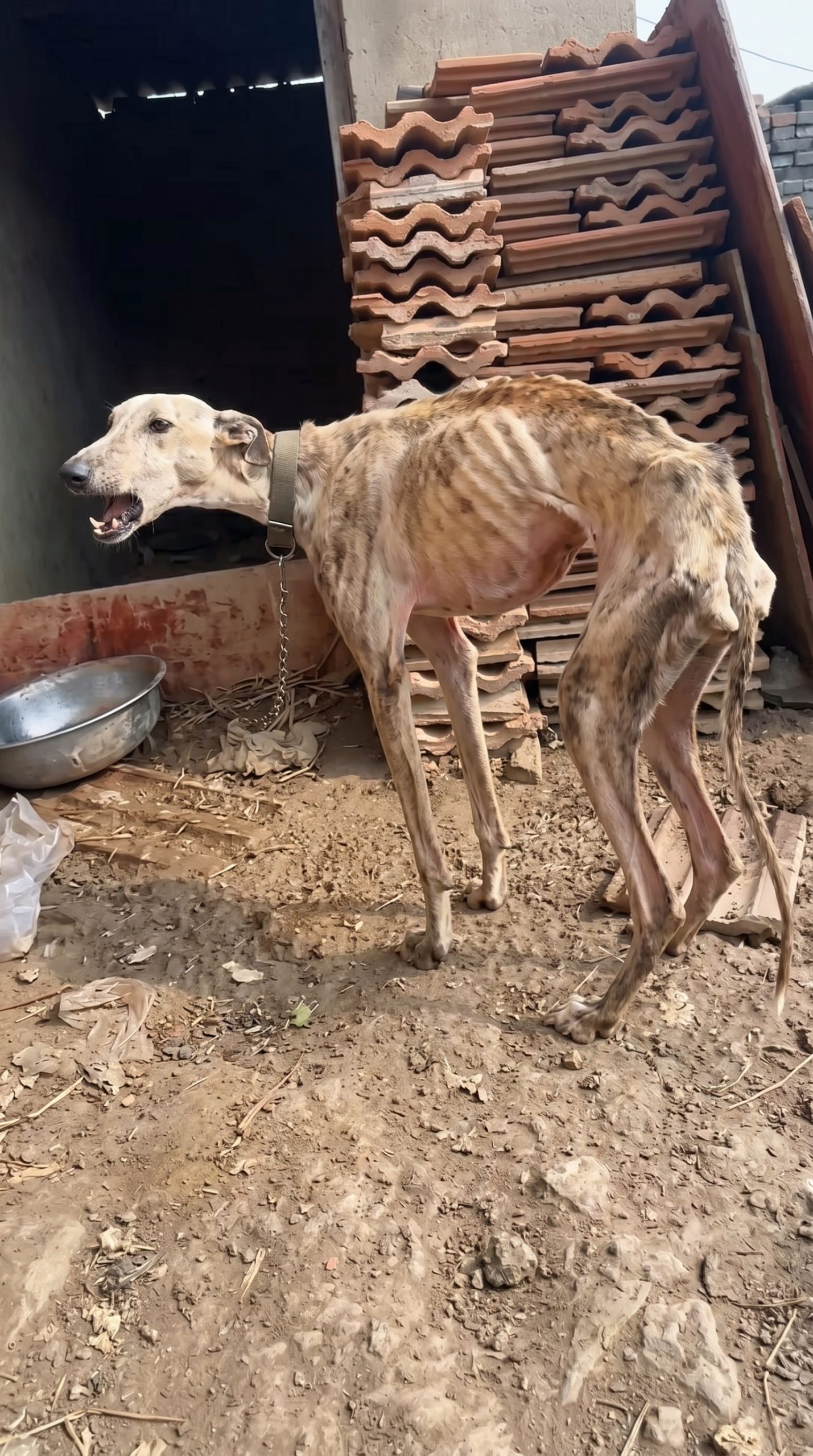 For an entire decade, a fragile Greyhound knew absolutely nothing but the short, unforgiving radius of a heavy chain. Her owner had tied her to the doorstep to guard the courtyard, but failed to provide even the most basic care or compassion.