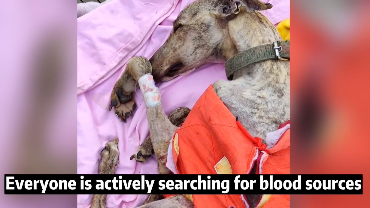 The hospital did not have enough blood supply on hand to save the fading Greyhound. Thinking quickly, the dedicated volunteers decided to reach out to another stray dog they had rescued just a few days prior.