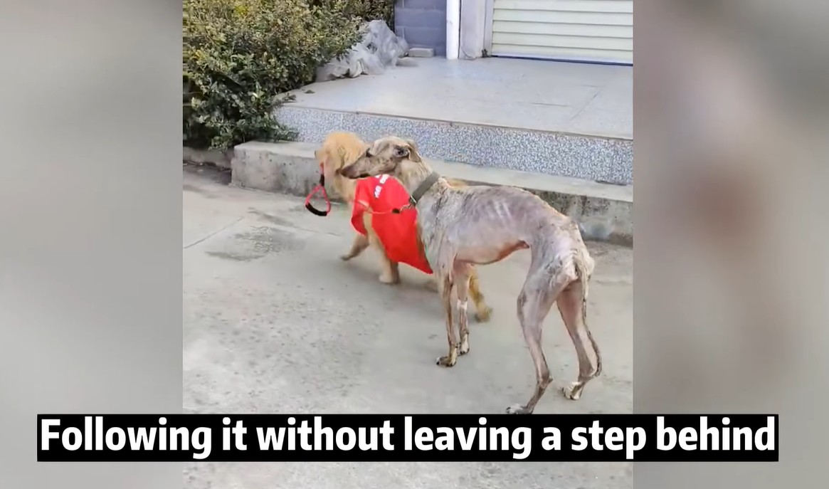 To make the moment even more special, her new adopted sibling—a gentle Golden Retriever—came to pick her up. The Golden Retriever proudly took her leash in his mouth, guiding LuLu out of the clinic like a protective big brother.