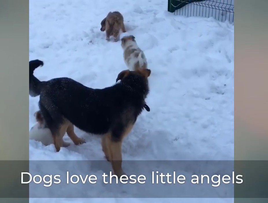 It was also their very first time seeing and interacting with other friendly rescue dogs in the play area. They were incredibly excited for the lively encounter, happily wagging their tiny tails at their new furry friends.
