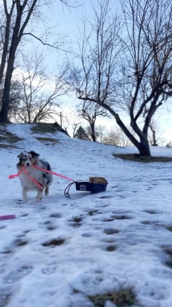 VIDEO: Snow-Obsessed Dog Turns A Litter Box Into A Sled For Her Feline Brother