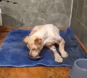 He will never run fast or play like a young puppy again, and his body still carries the deep scars of his past. But his evenings are now filled with soft beds, gentle brushing, and quiet hums.