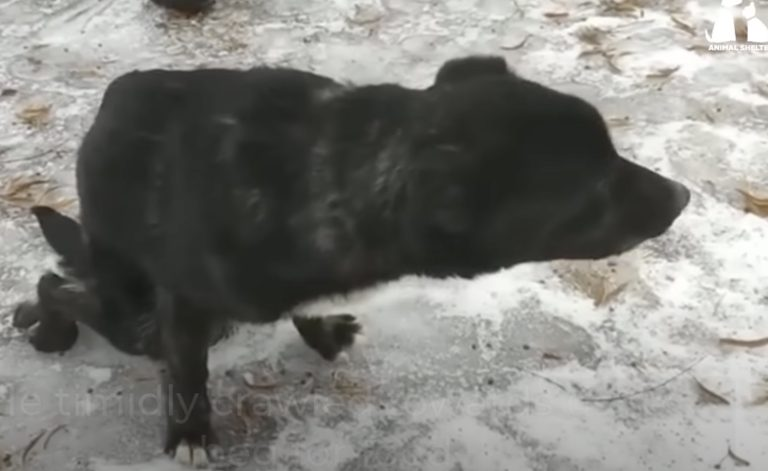 But eventually, the agonizing ache of starvation forces them to make a desperate choice. We first saw him slowly crawling toward us, dragging his paralyzed back legs through the freezing, bone-chilling snow. He approached shyly, his frail body shivering against the cold.
