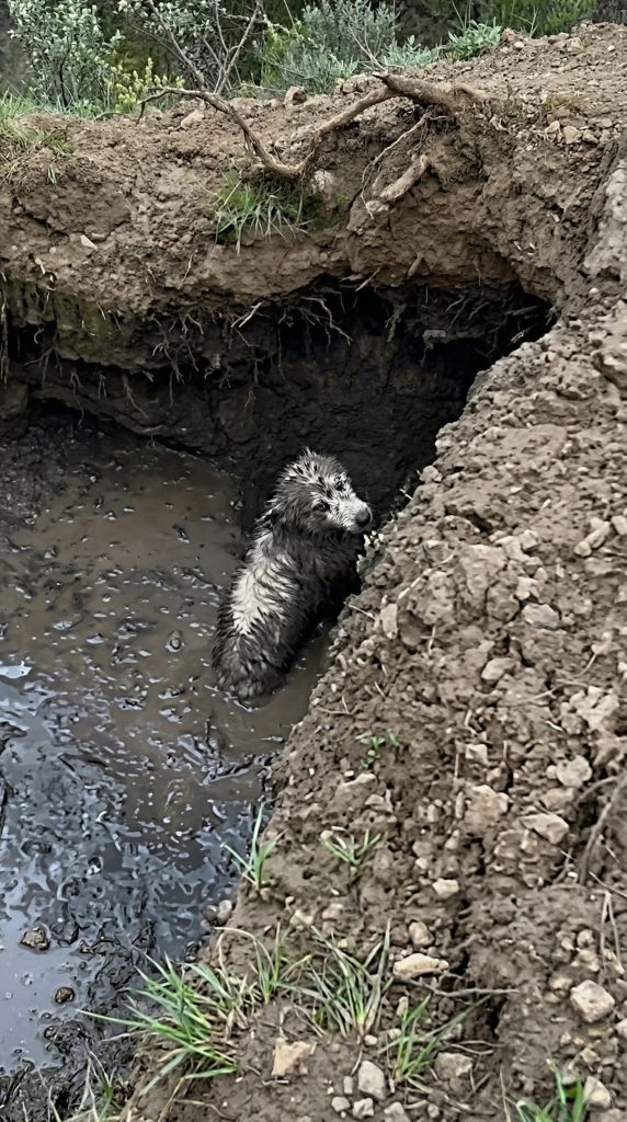 A dog was deeply stuck in a pit of wet, sinking mud. Her body was almost entirely submerged. The heavy earth pressed against her chest, making every breath a battle. She was drowning in slow motion.