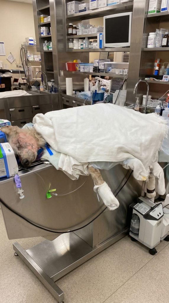 Jake wasn’t just starving. He was suffering from severe gastric bloat—his stomach was dangerously twisted and enlarged with trapped air. He required immediate, high-risk surgery, a terrifying prospect for a dog whose body was already failing.