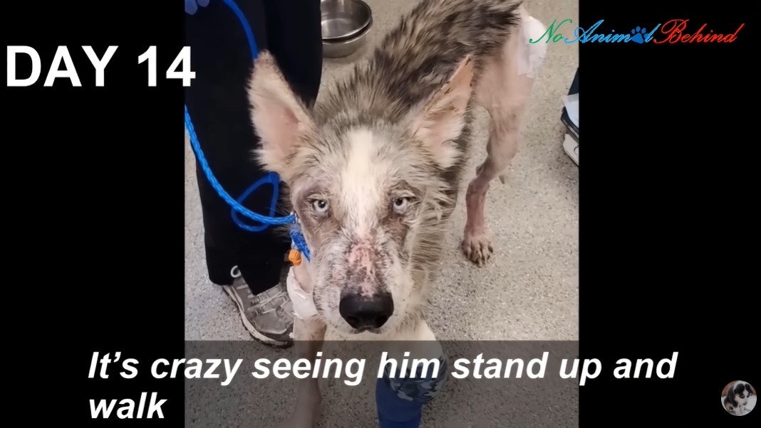 When Jake finally gathered the strength to stand for the very first time, the clinic staff were in awe. Unfurled from his cramped, frozen posture, he was a strikingly tall, handsome Husky.