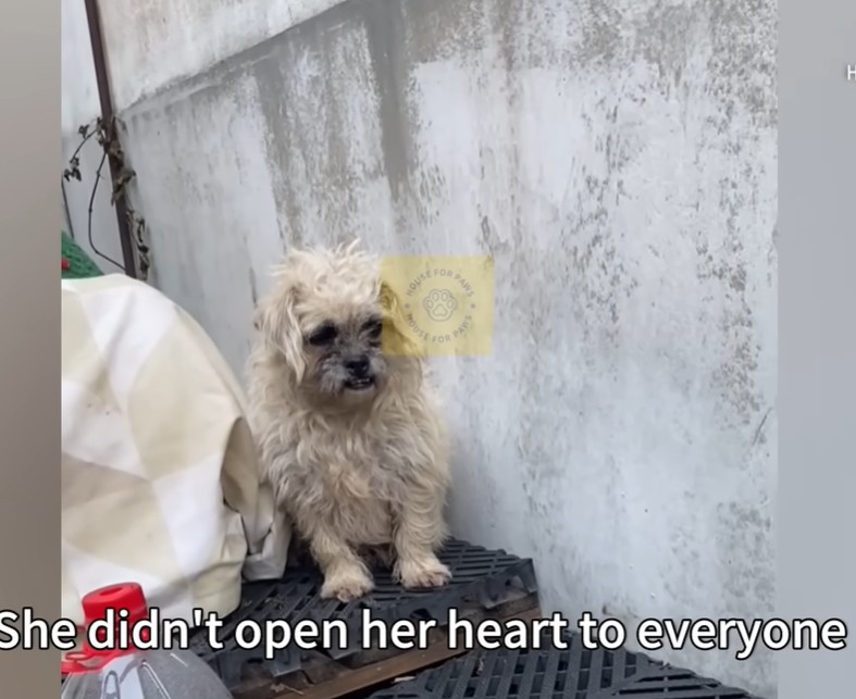 She didn’t bark or whimper, but simply lowered her weary head, her worn paws resting heavy on the damp pavement.