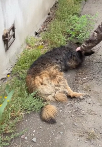 The majestic German Shepherd mix was experiencing a total, terrifying physical collapse.