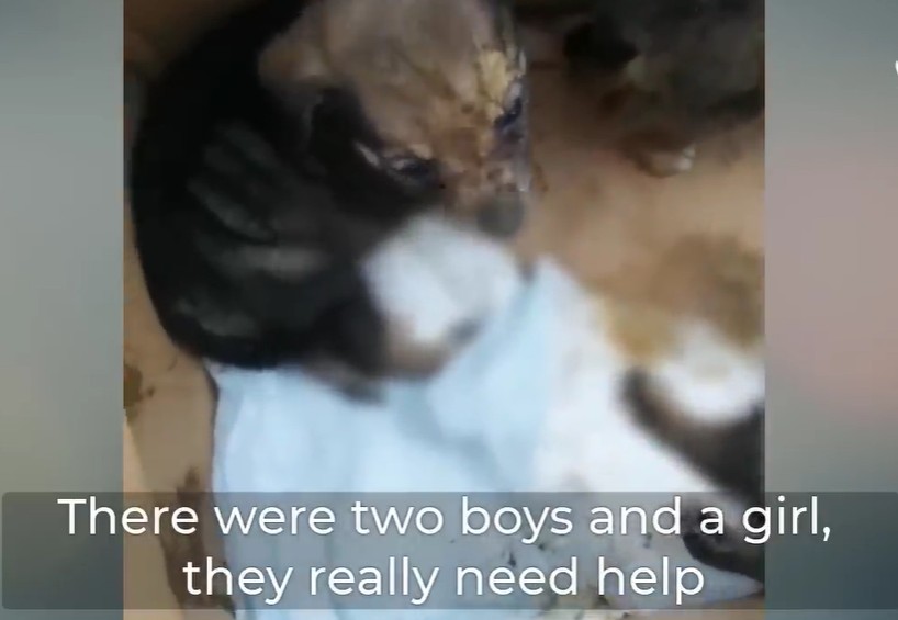 VIDEO: Three Abandoned Puppies Cry Under A Tree Waiting For Their Mother