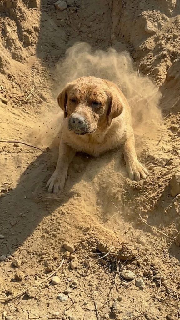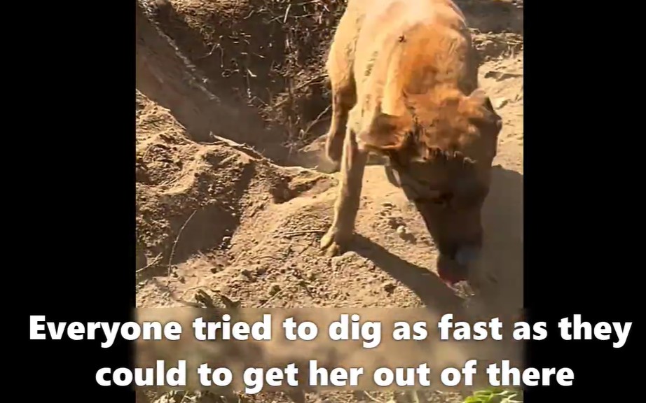 After agonizing minutes of digging, a dirt-covered head finally broke through the packed soil. The mother dog gasped for air, her brown eyes heavy with an exhaustion that instantly broke the rescuers’ hearts.