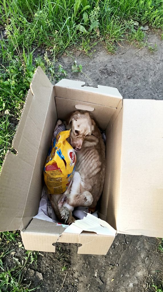 Inside the cramped cardboard walls was a young Labrador-mix. She was terrifyingly thin, her body stripped of everything but bone and skin. You could clearly count every single rib. Yet, despite the unimaginable betrayal she had just endured, she looked up at the woman with eyes that held no anger—only a quiet, innocent curiosity.