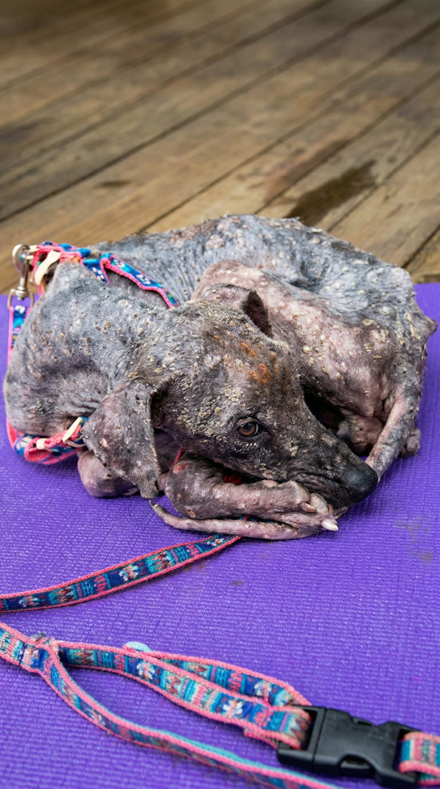 The dog was entirely hairless, her skin inflamed and burning hot to the touch. She was dangerously emaciated, looking as though she had endured absolute hell on earth. Lex knew with terrifying certainty that the dog was only days away from dying.