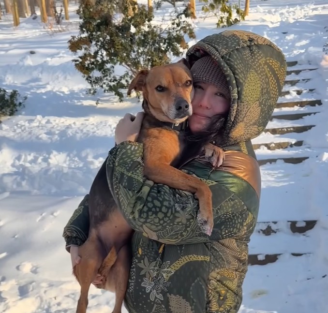 The moment they finally met in person was overwhelmingly emotional. The dog who was once too weak to even stand was now running up to her, her coat growing back, her eyes full of absolute life. Lex fell to her knees in tears, holding the dog she had fought so fiercely to save from thousands of miles away.