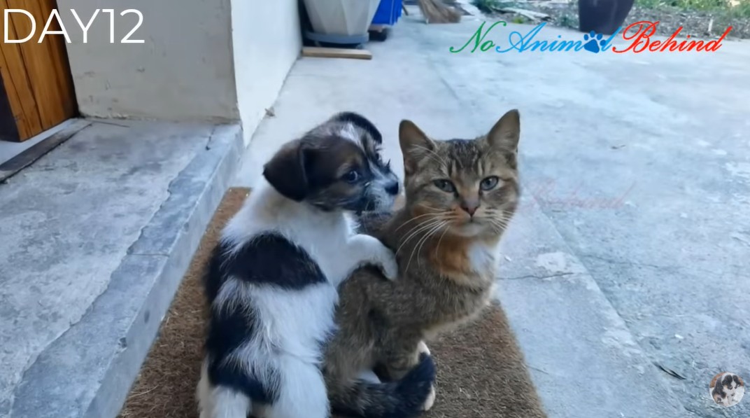 By his fourth day, he was coming when called. By day ten, the timid puppy who hid in the dark corners was completely gone. In his place was a bouncy, mischievous little monster. Coco began brazenly stealing food from the cats. He playfully terrorized a tough resident feline—a cat known for fiercely hunting mice and snakes—leaving the poor veteran mouser looking utterly exhausted by the puppy’s endless energy.