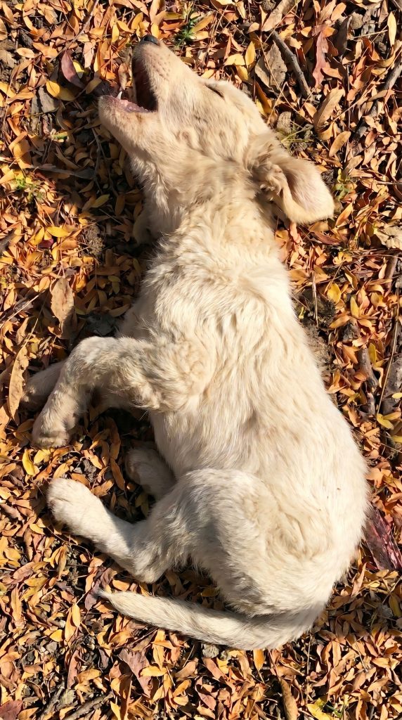 He devoured the small handful of kibble I offered with a frantic, terrifying desperation, eating so fast I feared he would choke right there on the pavement.