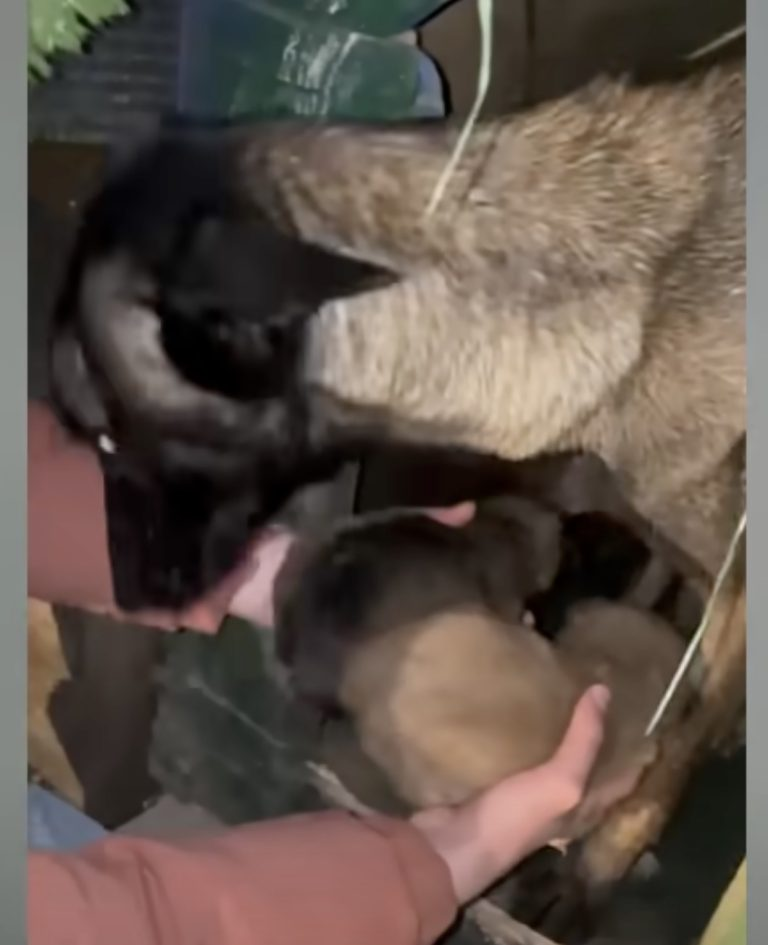 When we gently placed the fragile puppies back in front of her, Sierra’s dull eyes completely transformed. She buried her cold nose into their fur, carefully cleaning each one with the absolute last reserves of her fading energy.