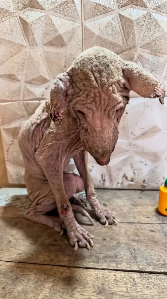 By her 17th day of recovery, her gentle spirit had already won over a forever family. Though she was still incredibly skinny and her recovery journey would be a marathon rather than a sprint, the physical changes were already visible. She was steadily gaining weight, and fresh, soft hair was finally beginning to grow over her infected skin.
