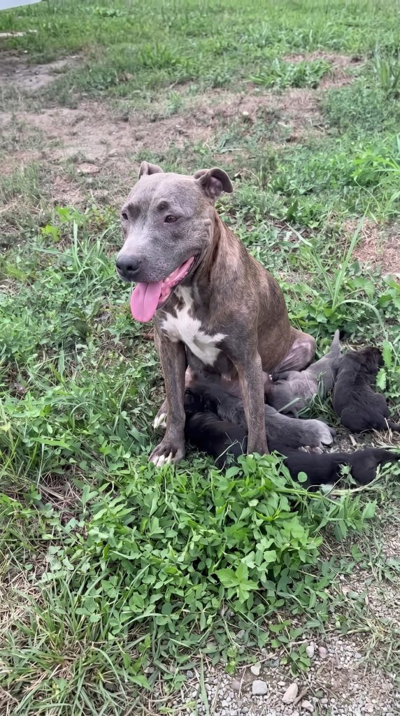 As I knelt on the bare earth, her trembling body pressed against my hand, shielding a pile of six tiny, crying newborns despite the agonizing swelling in her shattered back leg.