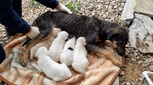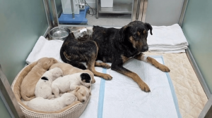 She gave birth to six puppies while paralyzed.