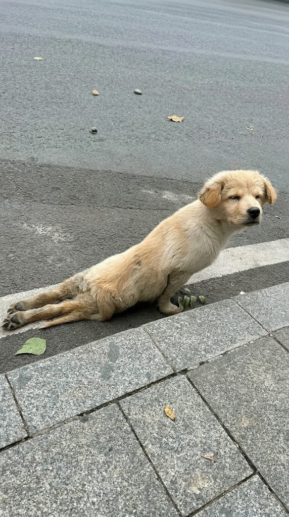 That was the tragic reality for a stray Golden Retriever puppy who had suffered a catastrophic injury. Left on the side of a busy road, his hind legs were completely powerless.